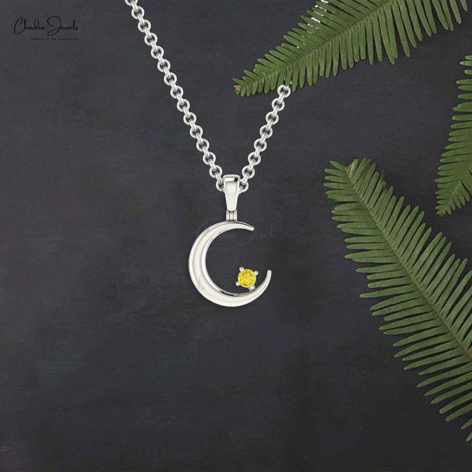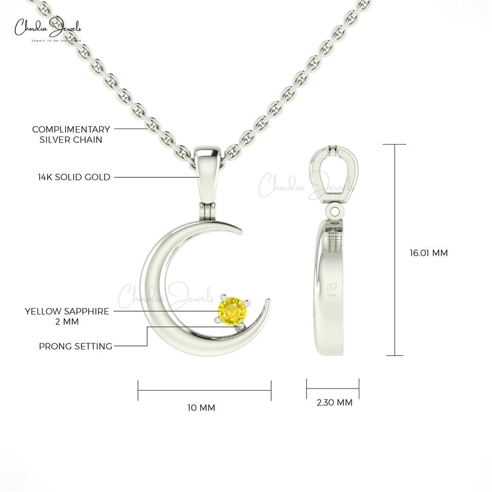 จี้พระจันทร์เสี้ยวพร้อมจี้สร้อยคอไพลินสีเหลืองตัดกลมขนาด2มม. จี้สร้อยคอทองคำแท้14K ดีไซน์ทันสมัย