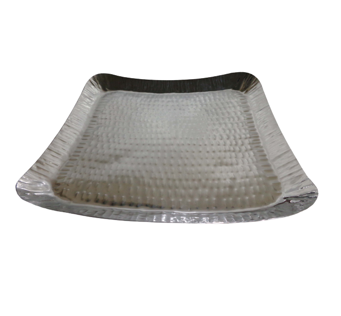 ถาดรองอาหารเย็นแฟนซีถาดเสิร์ฟอาหารดีไซน์ทันสมัยทำด้วยมือสีเงินสำหรับร้านอาหารโรงแรม
