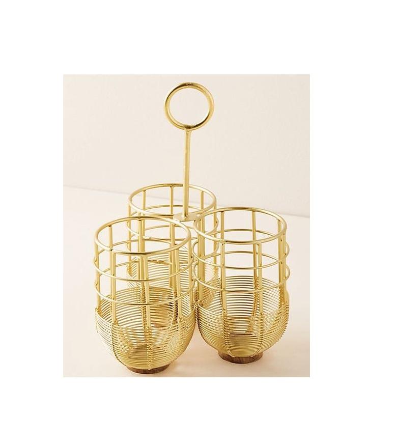 ที่ใส่ช้อนส้อมโลหะขัดเงาทองดีไซน์ทันสมัยปรับขนาดได้ตามต้องการ
