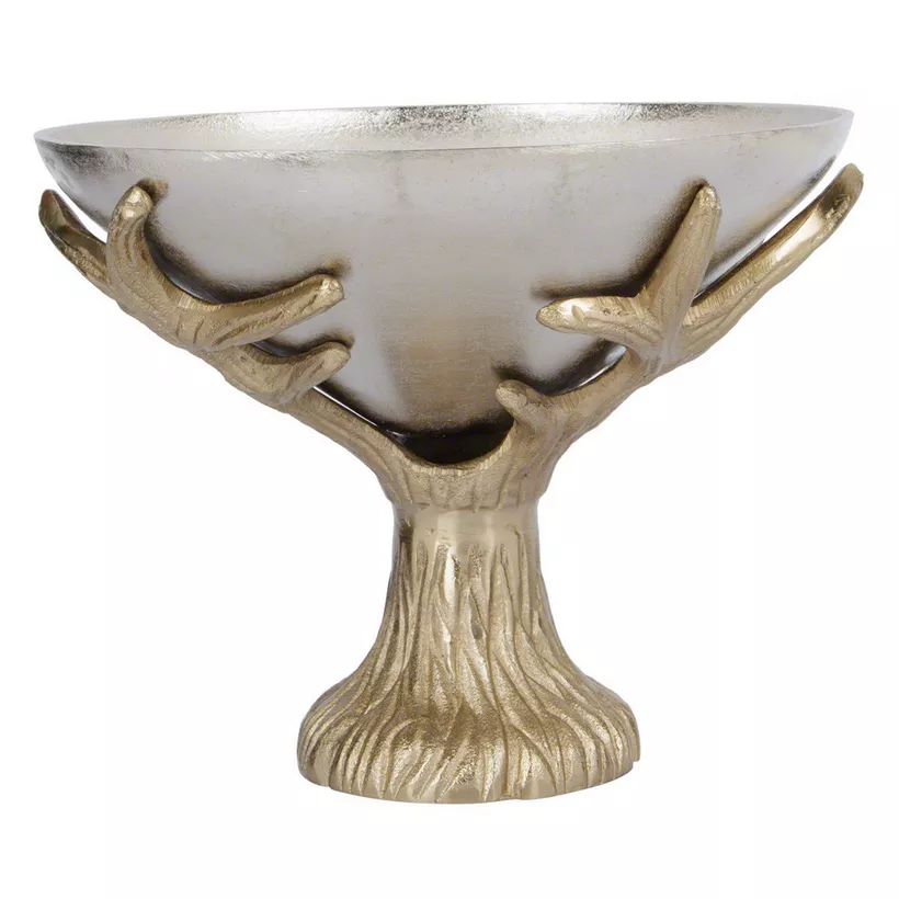 เครื่องใช้บนโต๊ะอาหารสำหรับตกแต่งดีไซน์ทันสมัยทำจากไม้และผลไม้ชามโลหะทำจากโครงกระดูกไม้เขากวางโลหะพร้อมขาตั้ง