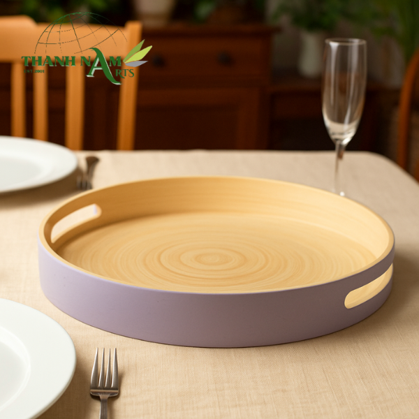 ถาดไม้ไผ่ดีไซน์ทันสมัยสองสี สวยงาม ยั่งยืน เป็นมิตรกับสิ่งแวดล้อม เหมาะสำหรับงานแต่งงาน งานเลี้ยง ใช้เสิร์ฟอาหาร ตกแต่งได้ ดีไซน์โดดเด่นไม่ซ้ำใคร