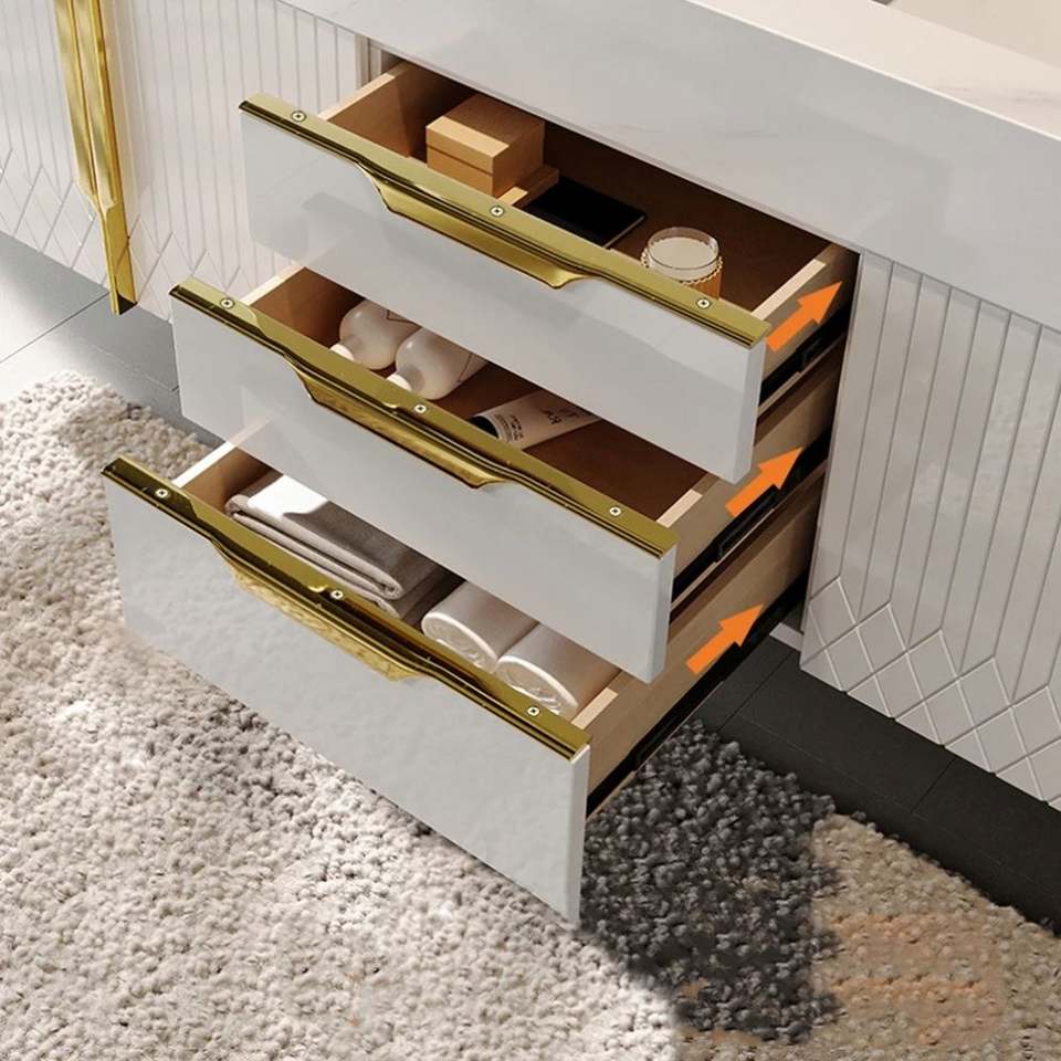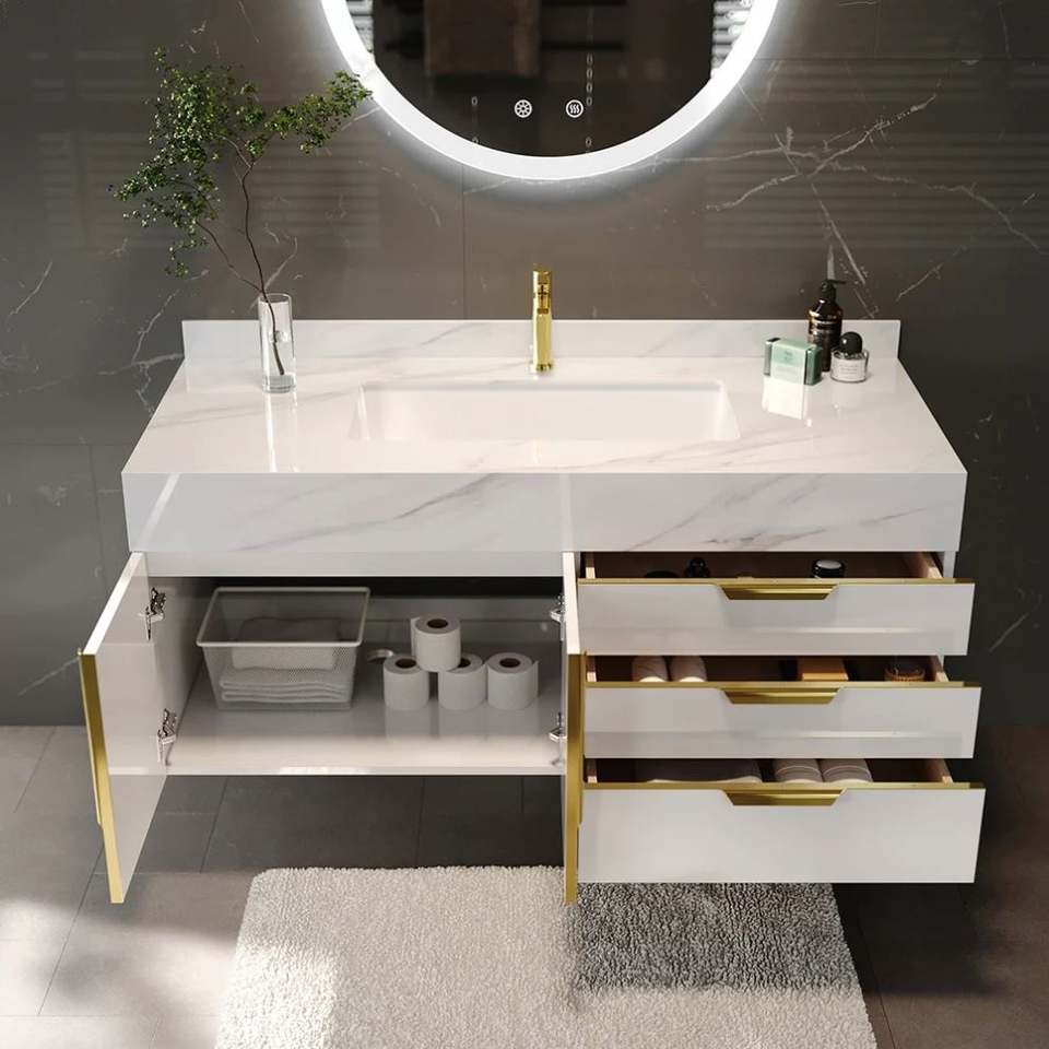 ตู้ห้องน้ำดีไซน์ทันสมัย สีขาวเงา พร้อมอ่างเซรามิก ไฟ LED ประหยัดพลังงาน ติดผนัง สำหรับใช้ในวิลล่า