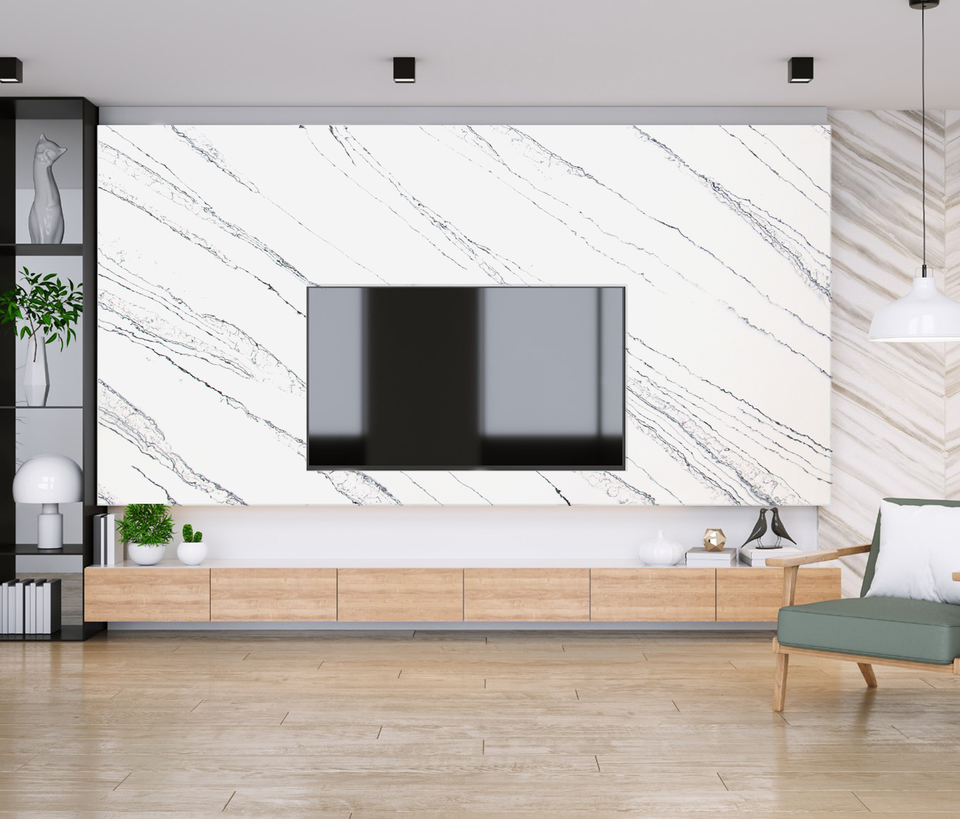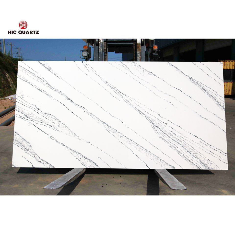 แผ่นควอตซ์คาร์ราร่าโอเชียนไวท์ขนาดใหญ่ ดีไซน์ทันสมัย สำหรับทำเคาน์เตอร์และผนัง กันน้ำ กันไฟ รับประกัน 5 ปีขึ้นไป ใช้ภายในอาคาร