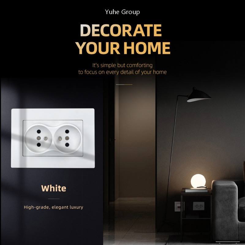 แผงควบคุมแบบสัมผัส PC ดีไซน์ทันสมัย ทนไฟ มาตรฐาน EU ปลั๊กไฟฝังผนังแบบฝรั่งเศส 2 ช่อง IP20