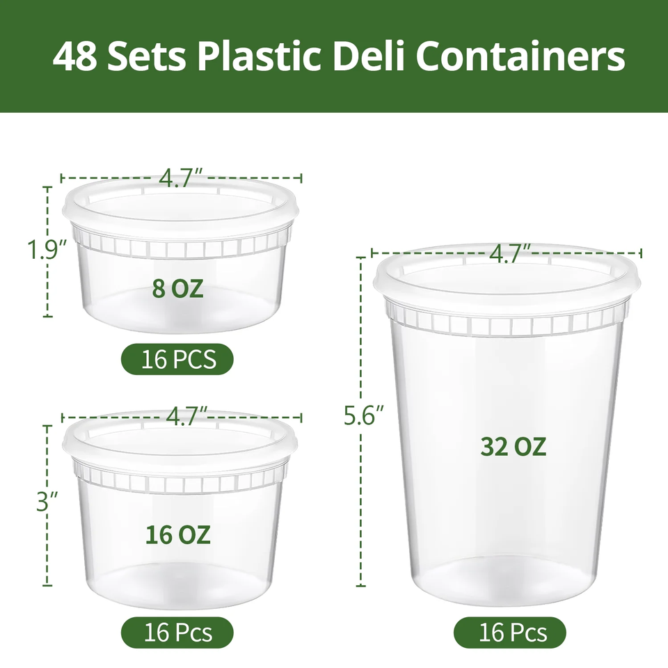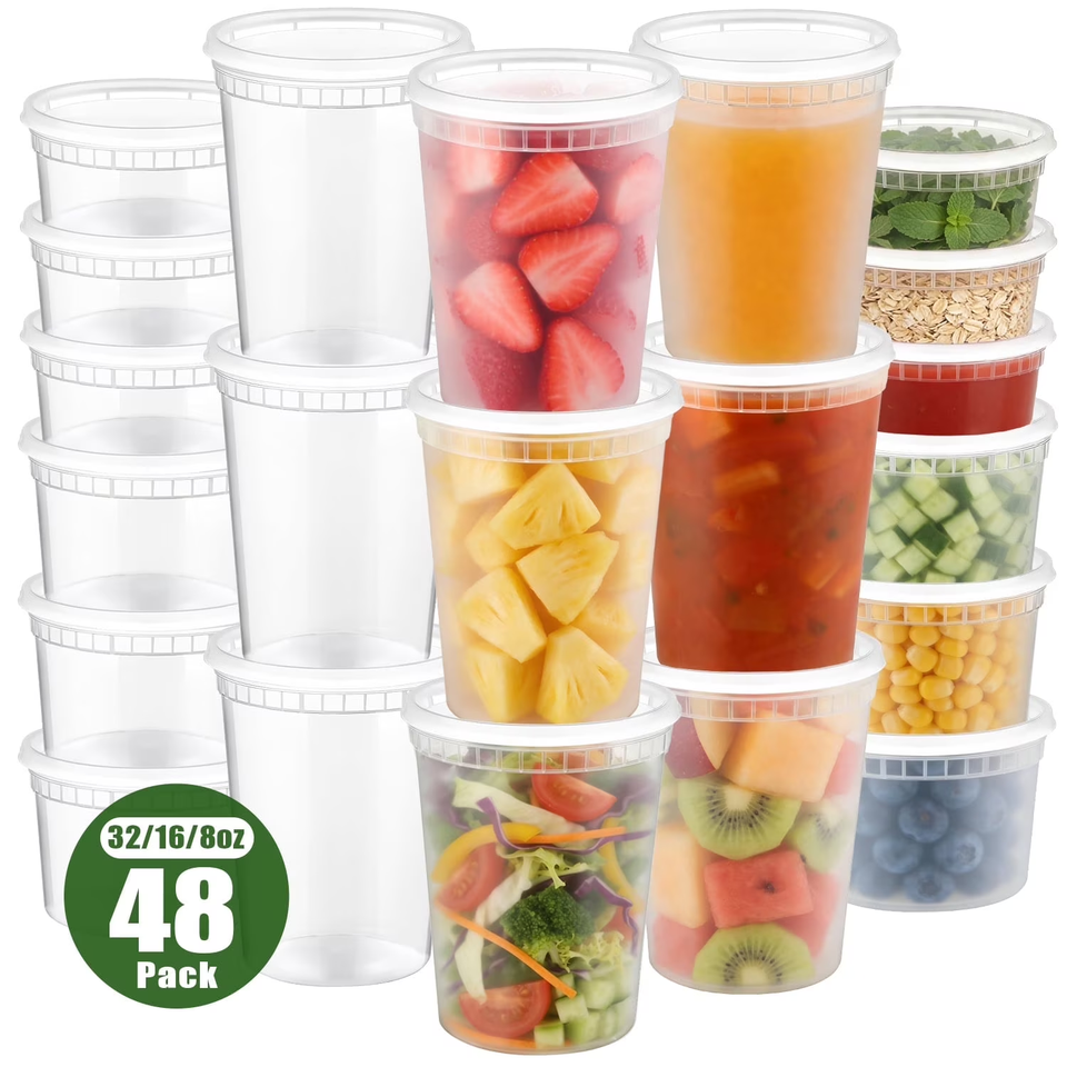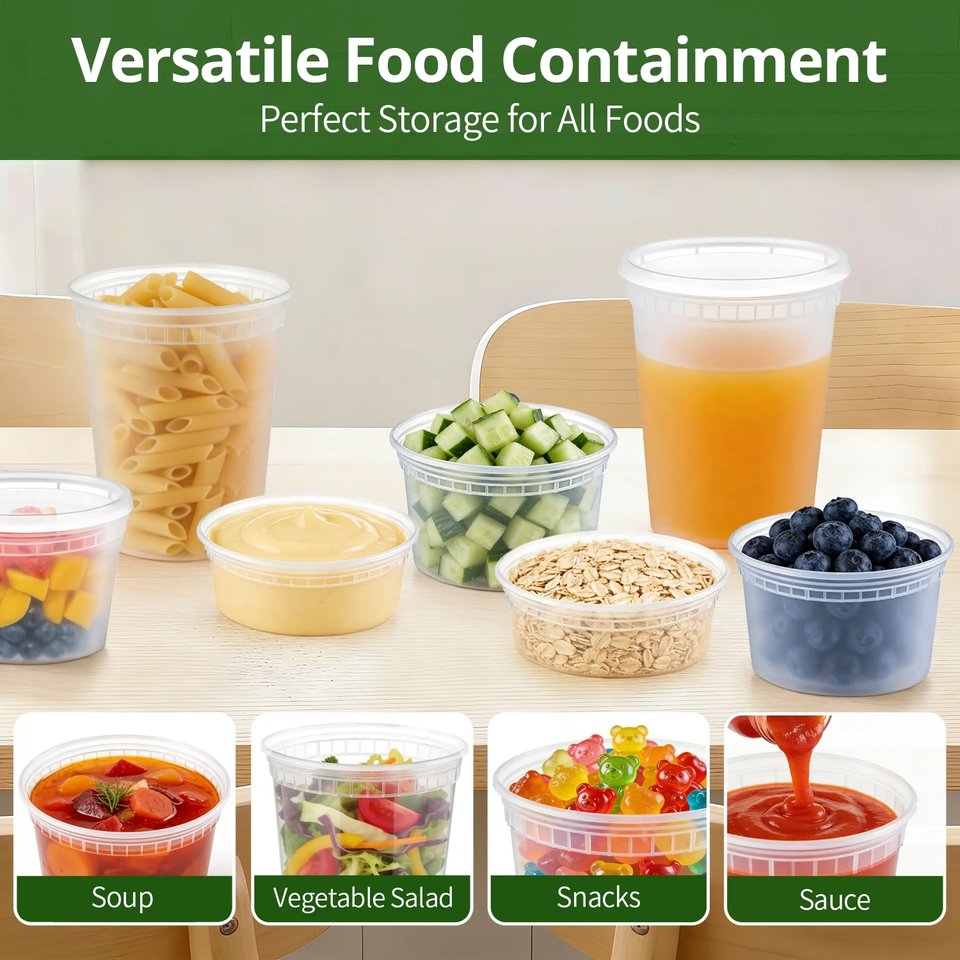 กล่องเก็บอาหารดีไซน์ทันสมัย ขนาด 32/16/8 ออนซ์ ฝาพลาสติกสำหรับอาหารเดลิ ซุป อาหารสำเร็จรูป ปลอดสาร BPA ป้องกันการรั่วซึม ใช้กับไมโครเวฟและช่องแช่แข็งได้