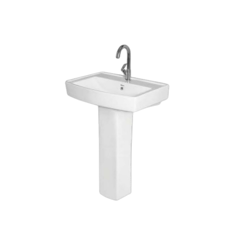 อ่างล้างหน้าเซรามิกแบบตั้งพื้นทรงรีสองชิ้น ดีไซน์ทันสมัย พร้อมก๊อกน้ำแบบรูเดียว สำหรับโรงแรมและห้องน้ำ