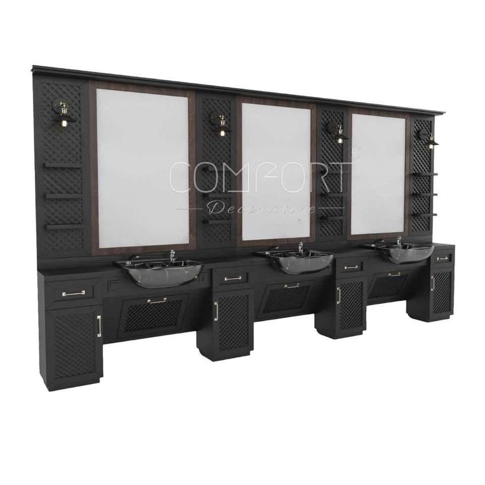 barber unit, gold and black barber station, luxury barber furniture