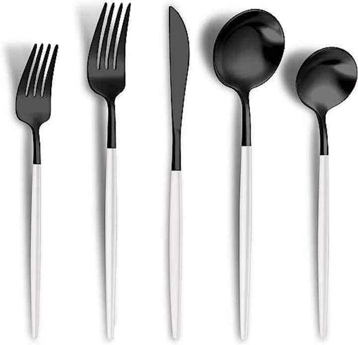 ชุดช้อนส้อมดีไซน์ทันสมัย ชุบทอง ทนทาน ไม่เป็นสนิม เหมาะสำหรับการรับประทานอาหารและโอกาสพิเศษ ผลิตจากเหล็กขัดเงา