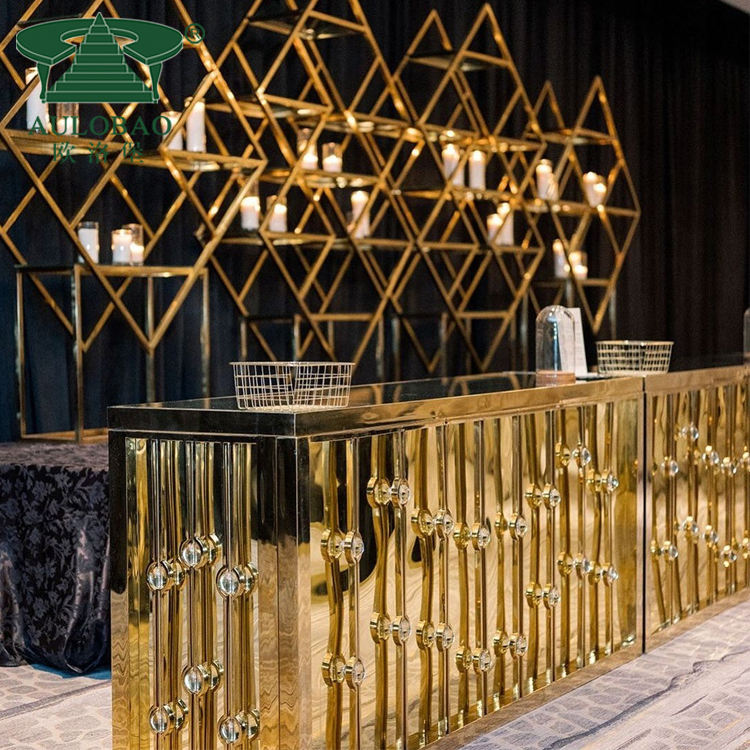 เคาน์เตอร์บาร์สแตนเลสสีทองและการต้อนรับสำหรับโรงแรมและห้องนั่งเล่นเฟอร์นิเจอร์เชิงพาณิชย์ดีไซน์ทันสมัย