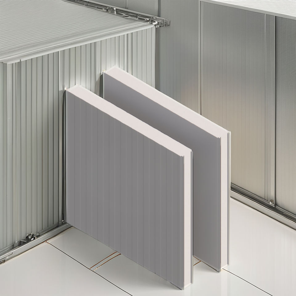 แผ่นผนังแซนวิชแบบโมเดิร์นดีไซน์สีเขียว แกน PIR สำหรับผนังภายในโรงงาน ห้องปลอดเชื้อ ห้องเย็น และผนังภายนอก