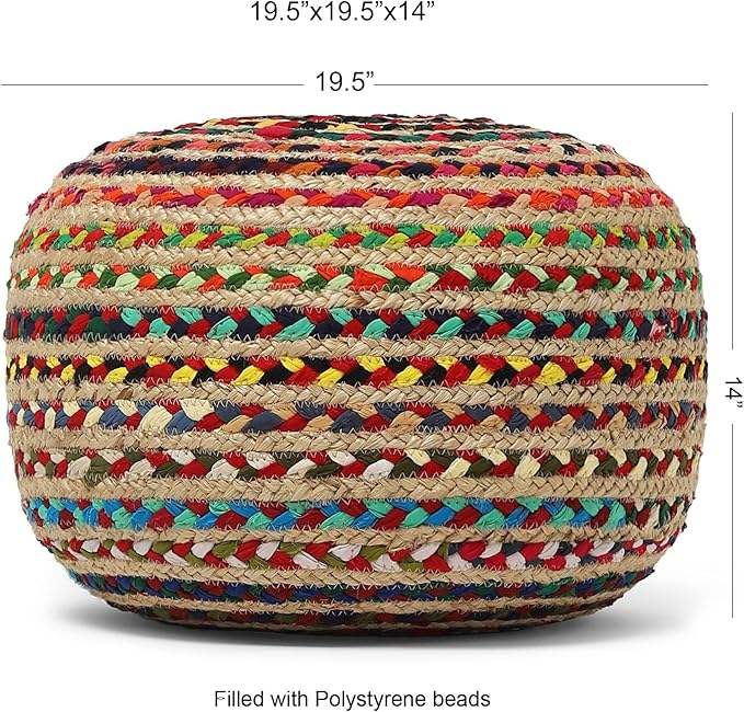 พรมปูพื้นทรงกลมแบบถักสไตล์โมเดิร์น ทำด้วยมือจากปอกระเจาและผ้าชินดี ชุด 2 ชิ้น เคลื่อนย้ายได้ เหมาะสำหรับตกแต่งห้องนั่งเล่น
