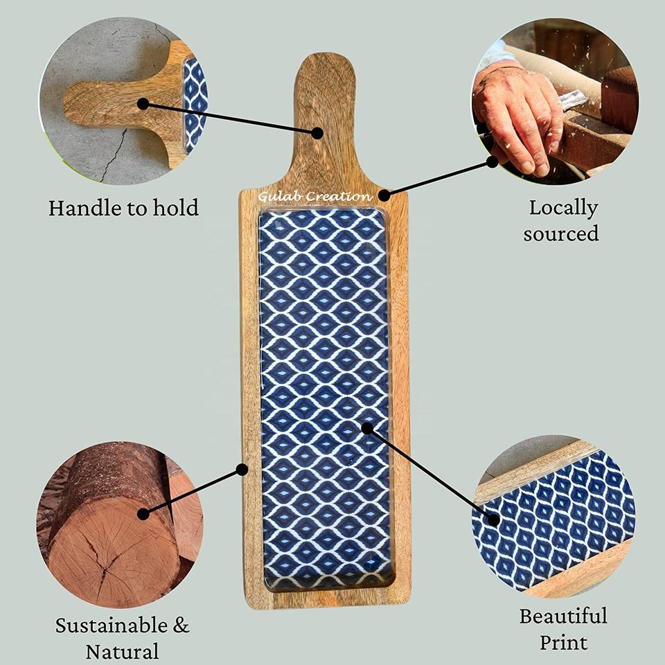 ถาดไม้ทำด้วยมือดีไซน์ทันสมัยสำหรับไม้มะม่วงพิมพ์ลายไม้ค้างคาวจานเสิร์ฟรูปขนมสำหรับงานรื่นเริงโต๊ะ