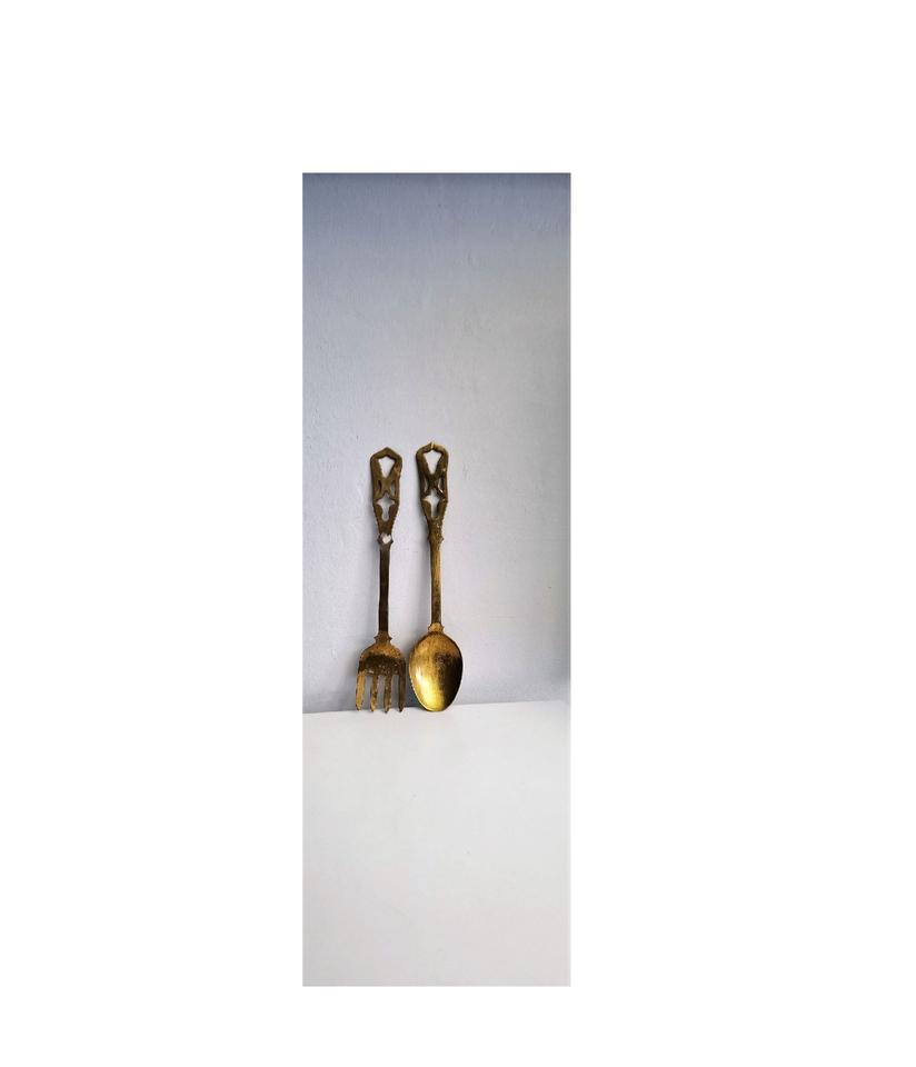 การออกแบบที่ทันสมัยแฮนด์เมดทองเหลืองสลัดเซิร์ฟเวอร์ชุดช้อนขายส่งผู้ผลิตชุดช้อนออกแบบใหม่ในอินเดีย