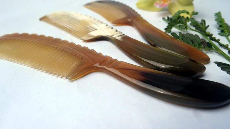 หวีฮอร์นดีไซน์ทันสมัยสำหรับผมหยิกสีฮอร์นธรรมชาติ