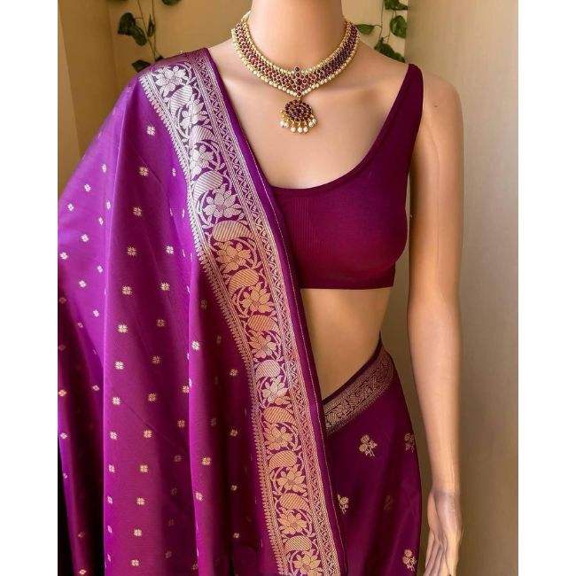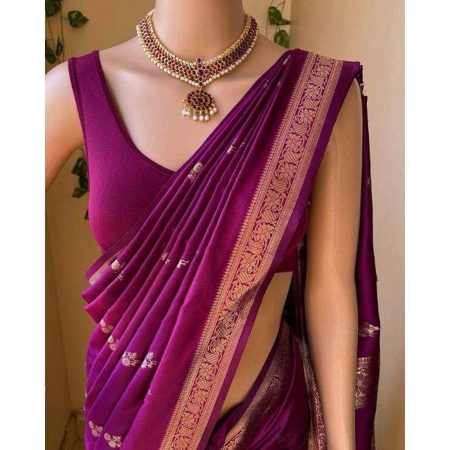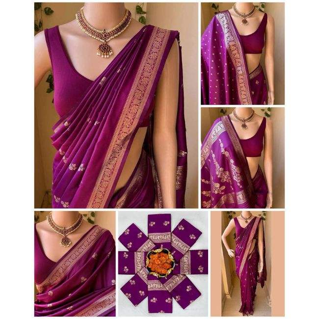 ผ้าส่าหรีผ้าไหมลายลิ้นจี่เนื้อนิ่มมีขอบแจ็คการ์ดและงานทอผ้าเก๋ไก๋น่าดึงดูดใจสำหรับงานปาร์ตี้