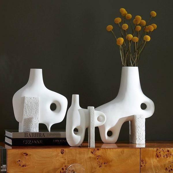 แจกันดอกไม้เซรามิกทำด้วยมือดีไซน์ทันสมัยของตกแต่งบ้านหรูหราสำหรับโรงแรมสำนักงานขายส่งแจกันเซรามิกพอร์ซเลน