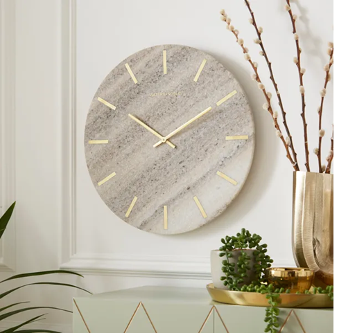 Modern Design Italy Bianco Carrara White Marble Stone Wall Clock for Living Room Decor with Needle Display and Number Pattern