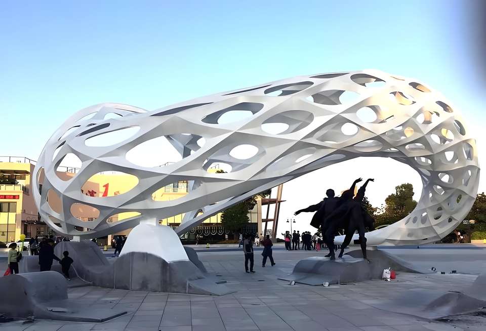 การออกแบบที่ทันสมัยรูปปั้นกระจกกลวงสแตนเลสขนาดใหญ่กลางแจ้งสวนสี่เหลี่ยมเครื่องประดับภูมิทัศน์