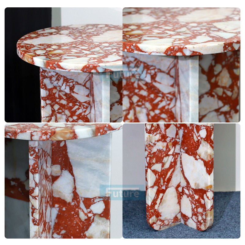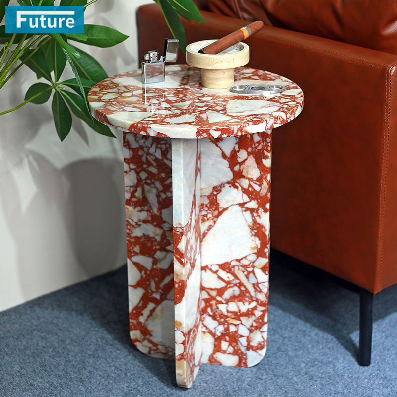 โต๊ะข้างหินอ่อนสีแดงโต๊ะปลายโต๊ะน้ำชาสำหรับอพาร์ทเมนต์วิลล่าโรงแรมเฟอร์นิเจอร์ห้องนั่งเล่นการออกแบบที่ทันสมัย