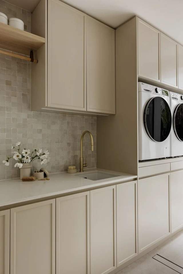 เฟอร์นิเจอร์ครัวไม้จริงดีไซน์ทันสมัยแบรนด์ SANYANG รุ่นหรูหราอเนกประสงค์ สีอ่อน