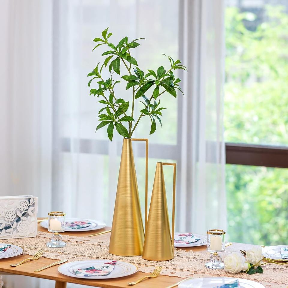 แจกันดอกไม้โลหะสีทองด้านการออกแบบที่ทันสมัยตกแต่งบ้านหรูหราด้วยการเคลือบผงสำหรับการจัดดอกไม้ที่สวยงาม