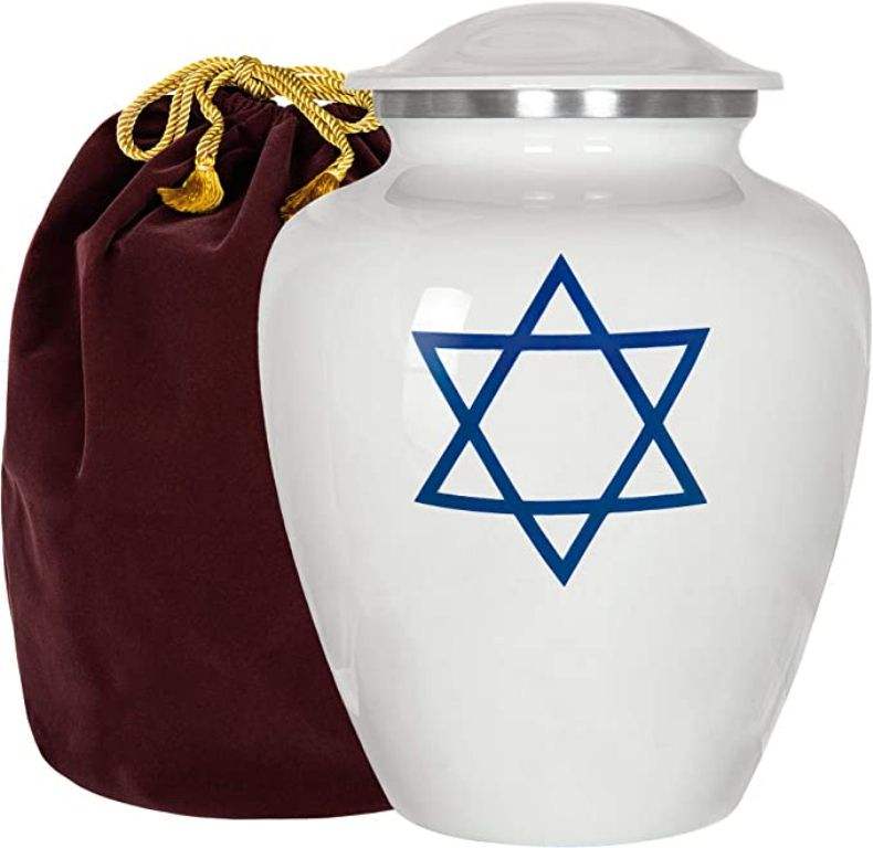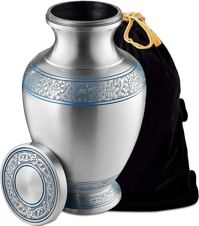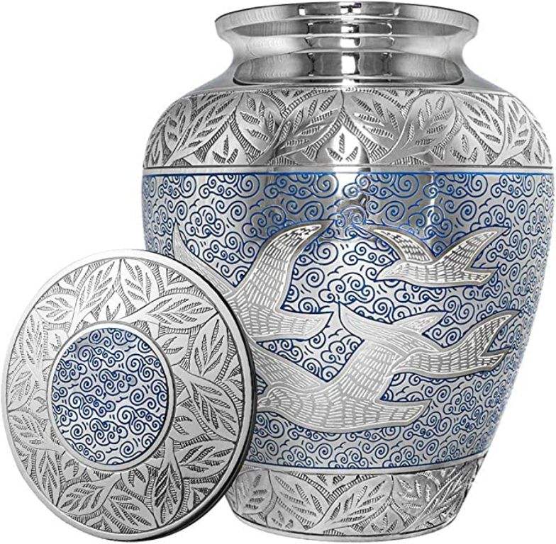 โกศโบราณสีเงินและสีน้ำเงินขนาดใหญ่สำหรับใส่เถ้ากระดูกผู้ใหญ่หรือสัตว์เลี้ยง โกศโลหะดีไซน์ทันสมัยสำหรับเก็บอัฐิ โกศสำหรับผู้ใหญ่