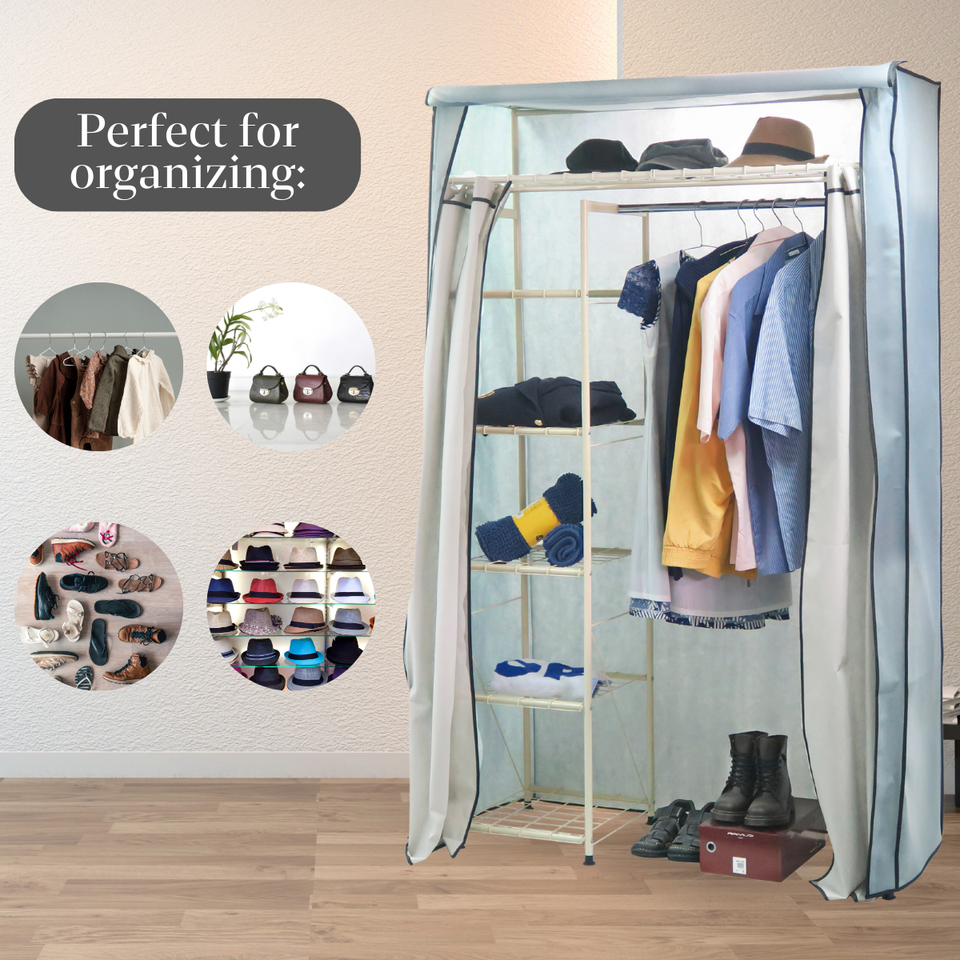 ชื่อผลิตภัณฑ์:ตู้เสื้อผ้าผ้ากรอบโลหะพร้อมฝากันฝุ่นประกอบง่าย