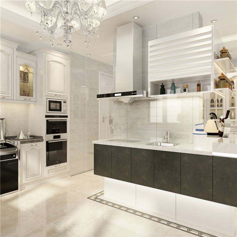 ตู้ครัวโมเดิร์นแบบโมดูลาร์สไตล์ยุโรป พร้อมก๊อกน้ำหินอ่อนเทียม ประกอบเองได้ แบบแพ็คแบน
