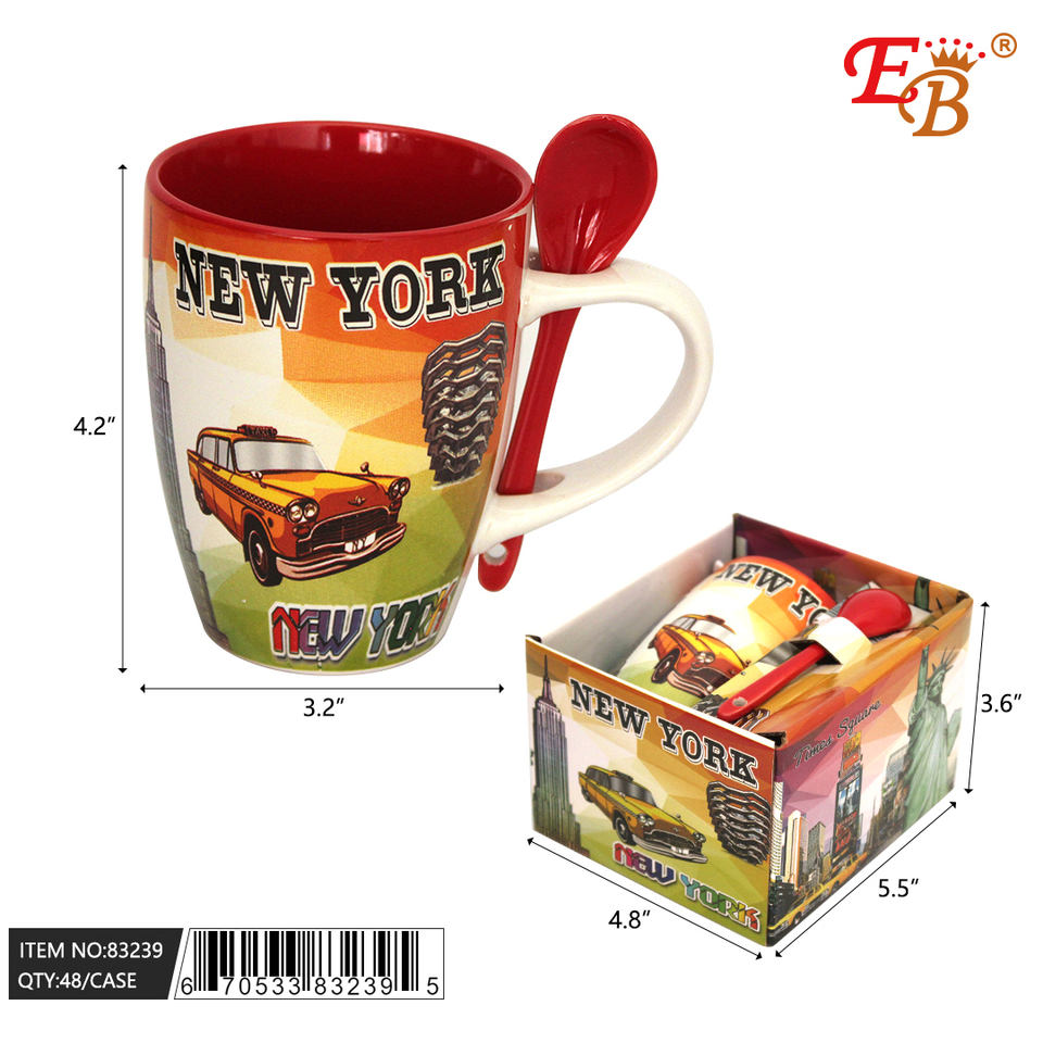 Modern Design NEW YORK Mug Spoon 48PCS/CS Safe Stoneware/Ceramic for Cafe Smoothie New Baby Father's Day Stocked Choice