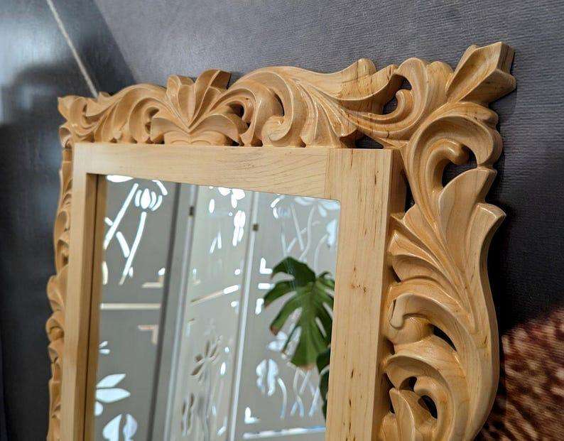 เฟอร์นิเจอร์ไม้แกะสลักดีไซน์ทันสมัย กระจกหรูหราจากไม้ธรรมชาติ ใช้งานได้หลากหลาย เหมาะสำหรับห้องน้ำ โรงแรม อพาร์ทเมนท์ วิลล่า บ้านไร่