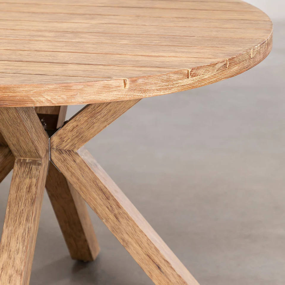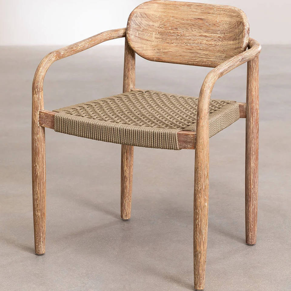 ชุดโต๊ะรับประทานอาหารกลางแจ้งดีไซน์ทันสมัย สไตล์อินดัสเทรียล ทำจากไม้สักและหวาย พร้อมเก้าอี้สวนแบบเชือก สำหรับใช้ในลานบ้าน - Naele
