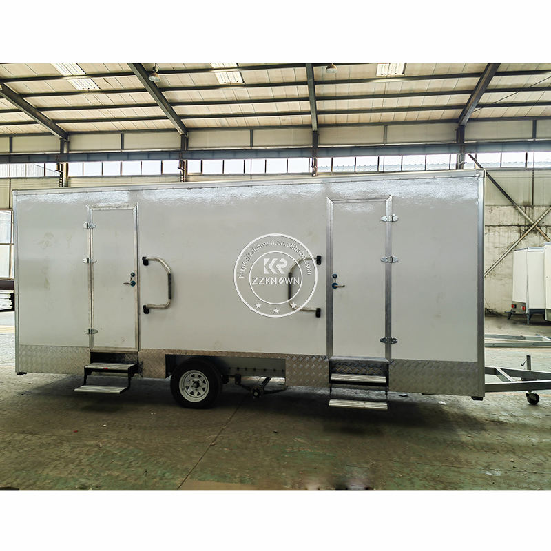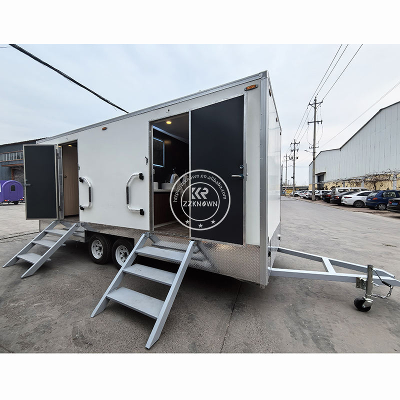 ห้องน้ำเคลื่อนที่ดีไซน์ทันสมัยสำหรับกลางแจ้ง พร้อมฝักบัวอาบน้ำ ห้องสุขาแบบพกพา VIP รถพ่วงห้องน้ำเคลื่อนที่สุดหรู