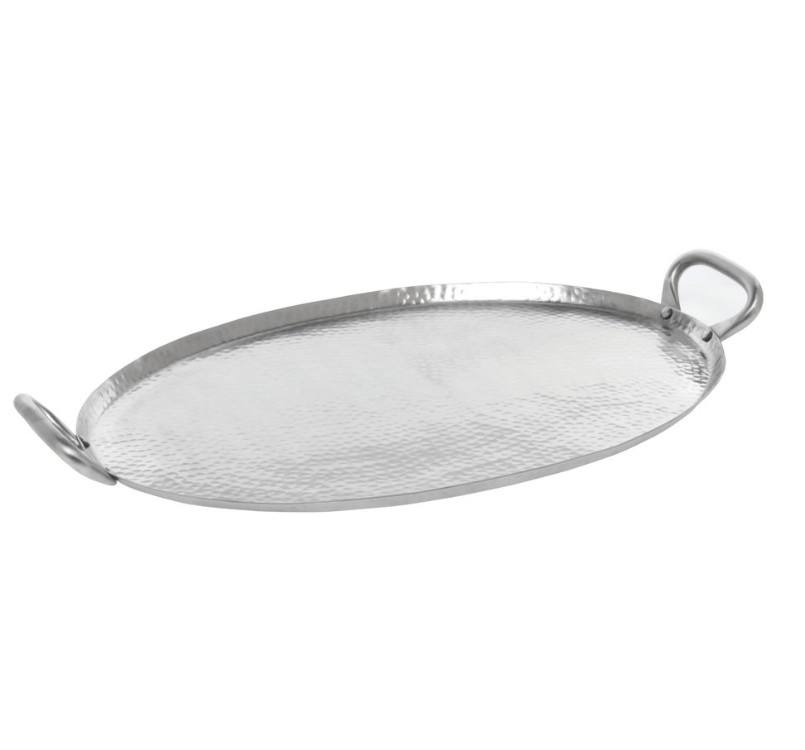 ถาดเสิร์ฟสเตนเลสทรงรีแบบทันสมัย ดีไซน์ลายตอก พร้อมหูจับ ถาดโลหะสำหรับบุฟเฟ่ต์ จัดเลี้ยง บริการอาหาร งานแต่งงาน