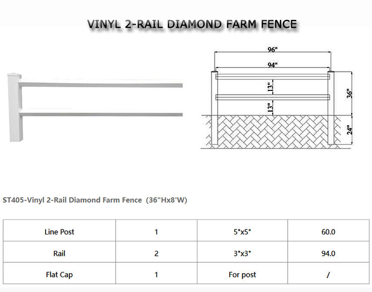 Product name:PVC Diamond 2 Rails Vinyl Fencing