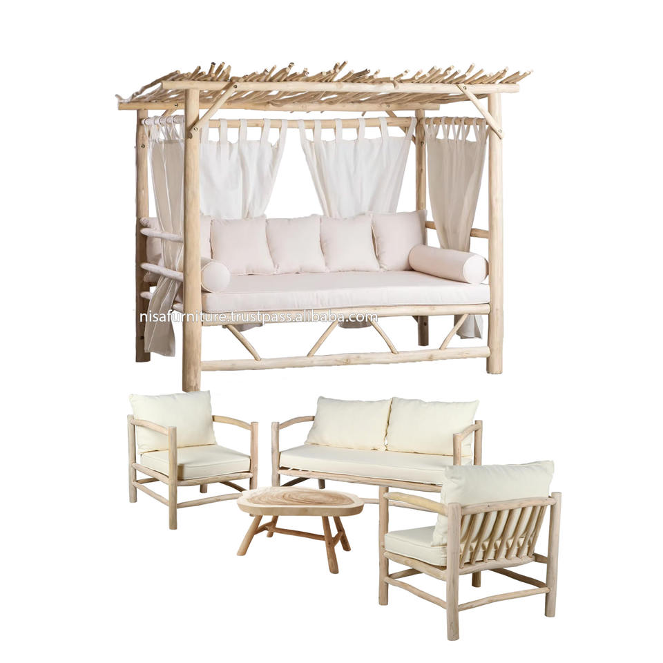 ชุดโซฟากลางแจ้งลานธรรมชาติศาลาไม้สักเฟอร์นิเจอร์ในสวนสินค้าส่งออกจากผู้ผลิตอินโดนีเซีย