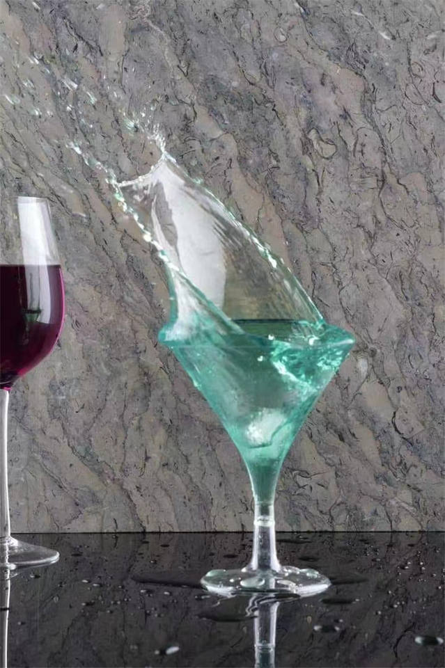 แผ่นหินอ่อนสีโอนิกซ์สีเทาสีเทาขัดเงาสีฟ้าขัดเงาพร้อมเส้นเลือดดำสำหรับบ้านโรงแรมวิลล่าโซลูชั่นการออกแบบกราฟิก