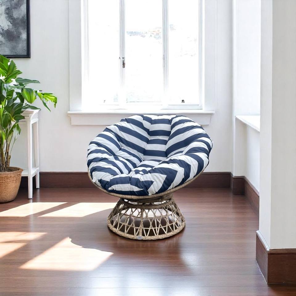เก้าอี้หวายโพลีแบบหมุนได้พร้อมเบาะรองนั่งจัดส่งเร็วเก้าอี้แกว่งสำหรับสวนเฟอร์นิเจอร์กลางแจ้งลานอาบแดด