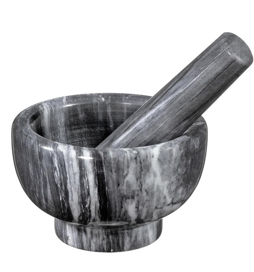 ชุดครกหินอ่อนสีขาวบริสุทธิ์พร้อมสากเครื่องมือสำหรับใช้ในครัวการออกแบบที่ทันสมัย