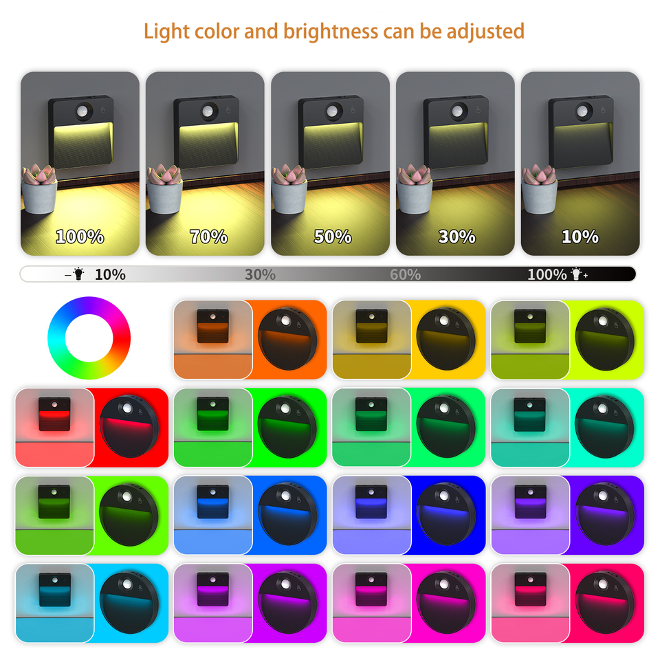 ไฟ LED เซ็นเซอร์ตรวจจับความเคลื่อนไหวแบบชาร์จได้ ดีไซน์ทันสมัย เปลี่ยนสีได้ ขนาดเล็ก ปรับความสว่างได้ เหมาะสำหรับห้องนอน ทางเดิน บันได