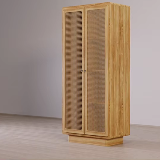Modern Design Rene Series Tall Wardrobe for Bedroom High Quality Natural Color Dressers with Teak Wood Rattan Accent