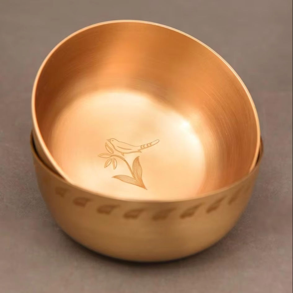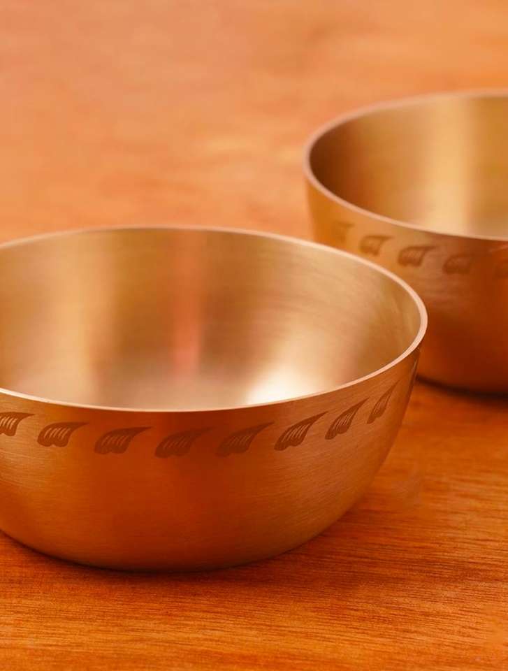 ชุดรับประทานอาหารค่ำทองเหลืองบริสุทธิ์สำหรับร้านอาหารดีไซน์ทันสมัยชุดกลมชามทองเหลืองสำหรับใช้ในบ้านโรงแรม