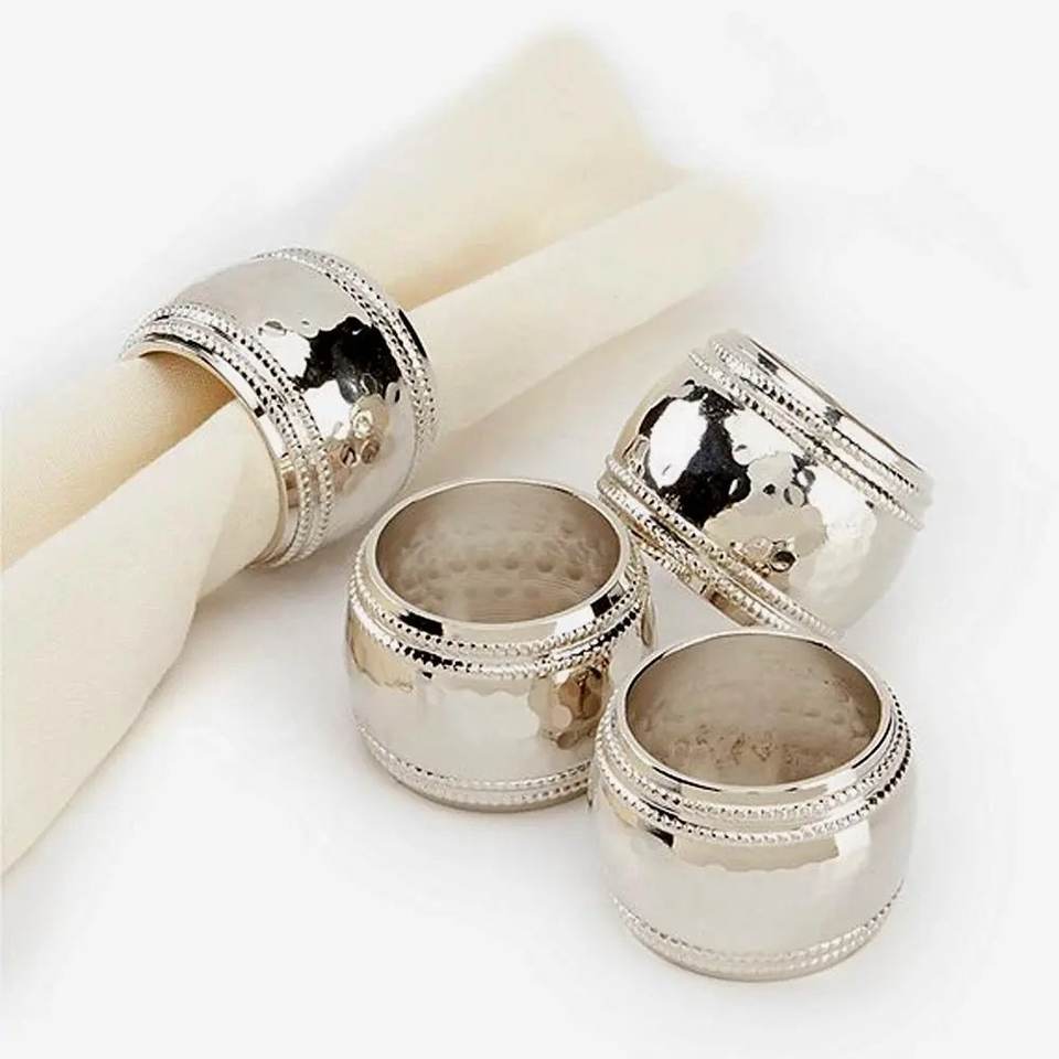 ห่วงใส่ผ้าเช็ดปากโลหะทรงกลมชุบเงินสำหรับงานแต่งงานของตกแต่งบนโต๊ะที่ใส่ผ้าเช็ดปากทำมือจำนวนมากดีไซน์ทันสมัย