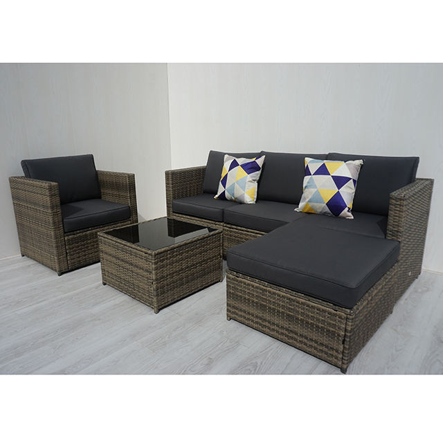 ชุดโซฟาหวายสีเทาเข้มสำหรับสวน5-Seater SF00053ทันสมัยโต๊ะกาแฟ1โต๊ะเฟอร์นิเจอร์กลางแจ้งสำหรับโรงแรมวิลล่าอารมณ์