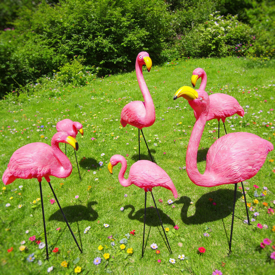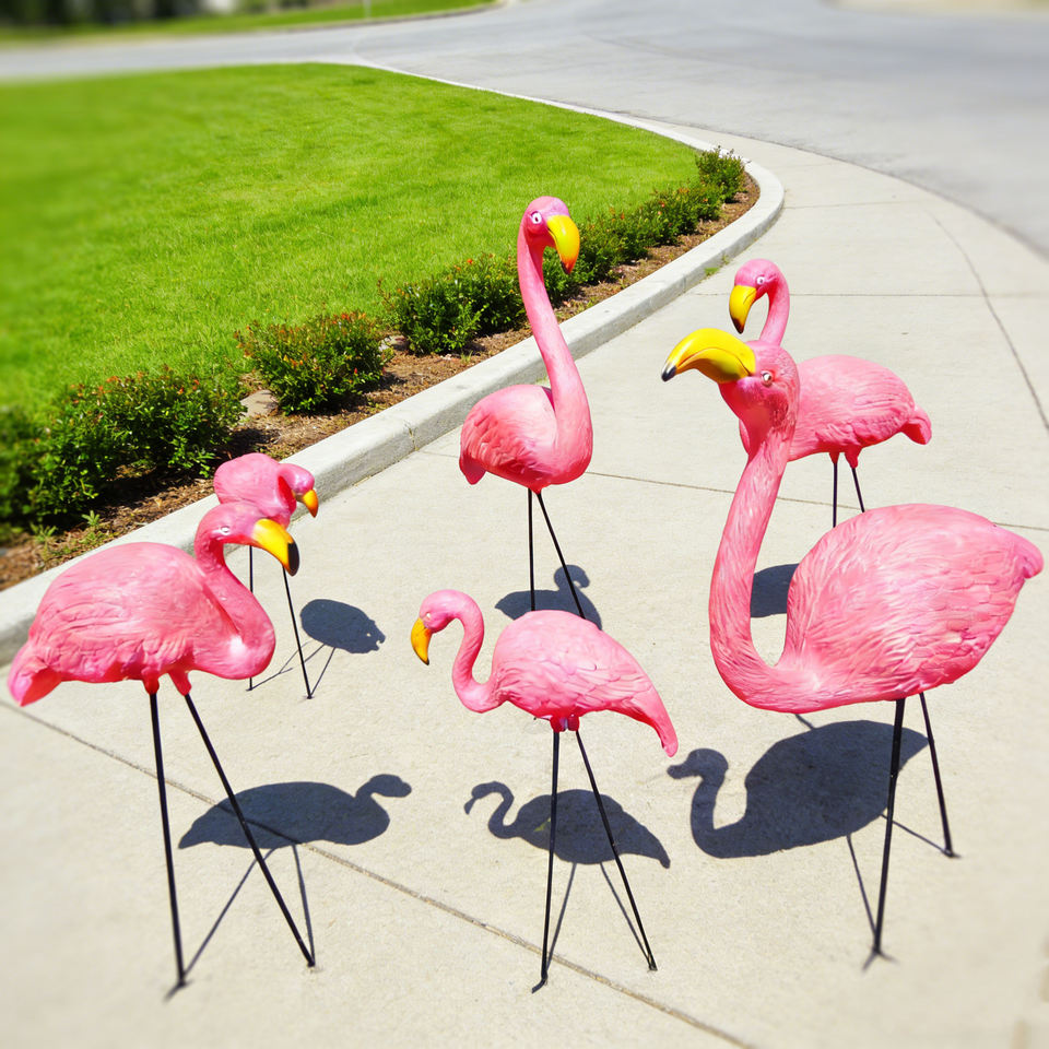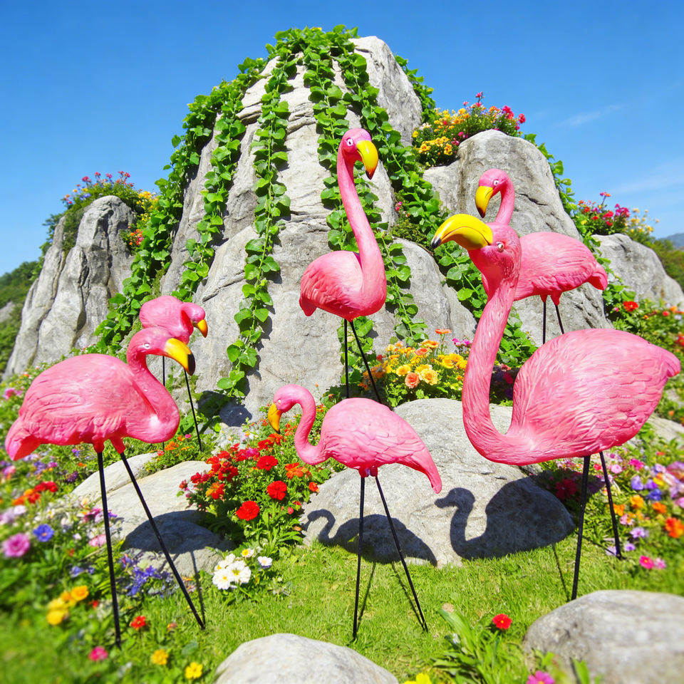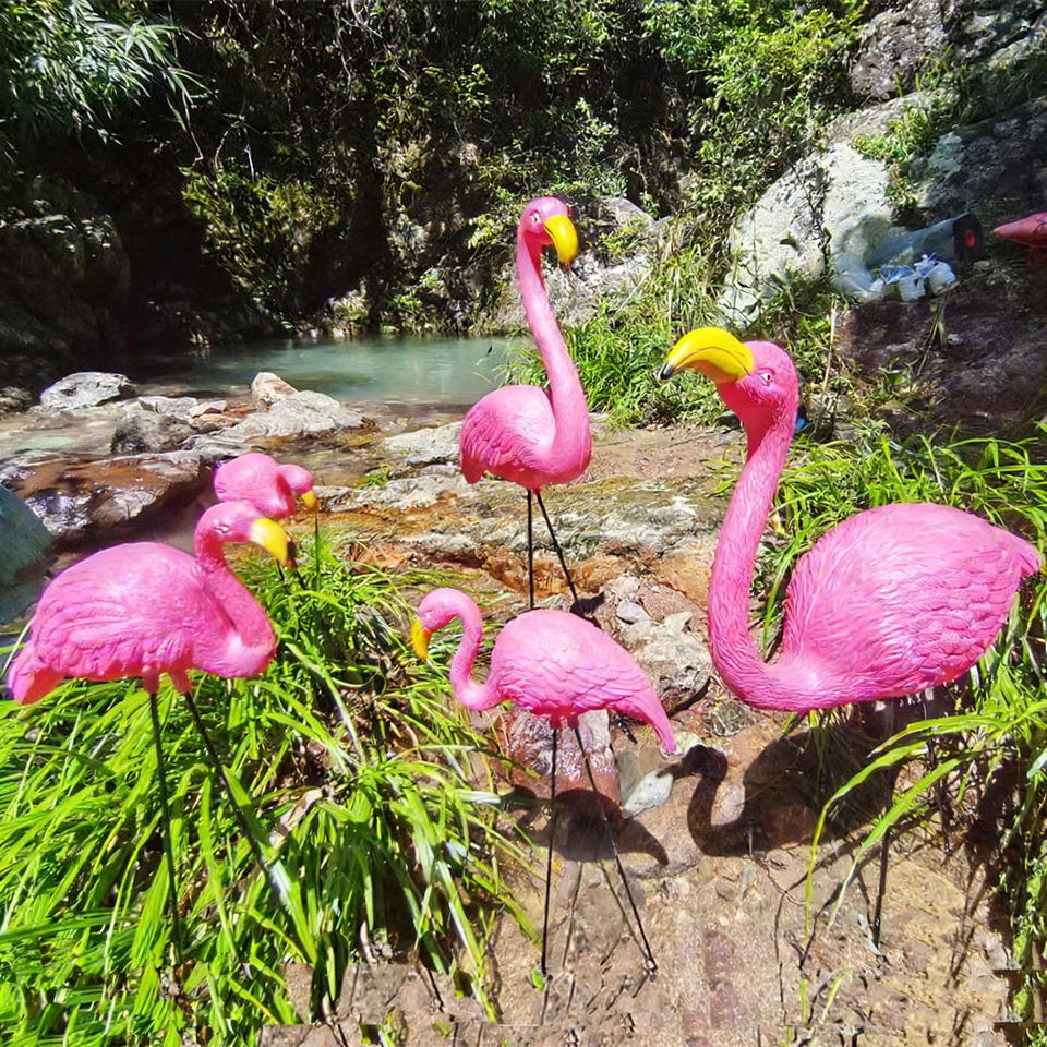 ประติมากรรมนกสีชมพูสวยงาม ดีไซน์ทันสมัย พร้อมขา PE ปรับระดับได้ ใช้ตกแต่งสวนหรือเป็นเหยื่อล่อสัตว์ป่ากลางแจ้ง