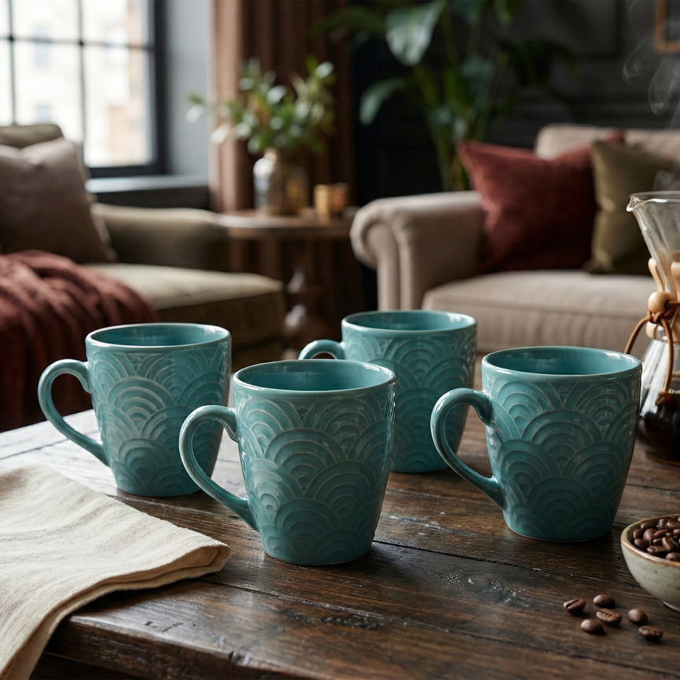 Modern Design Sea Foam 3D Ceramic Coffee Mugs (Set of 4) 200-360ml Stoneware Dishwasher Safe for Hot Chocolate Other Beverages
