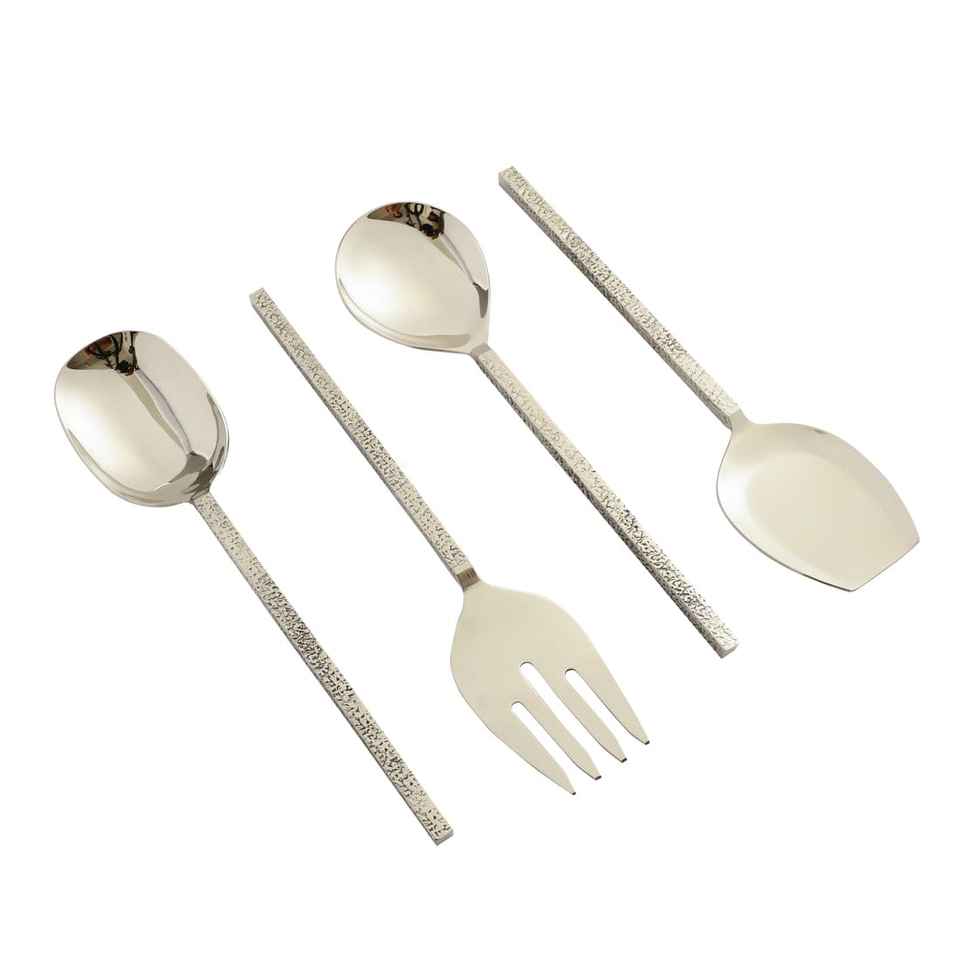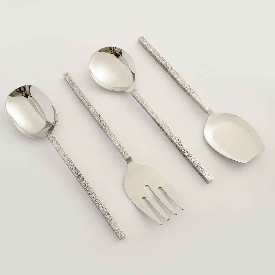 ชุดช้อนเสิร์ฟสลัดสแตนเลสชุบเงิน ดีไซน์ทันสมัย แบบใหม่ ปลอดภัยสำหรับเครื่องล้างจาน เหมาะสำหรับครัวและโรงแรม