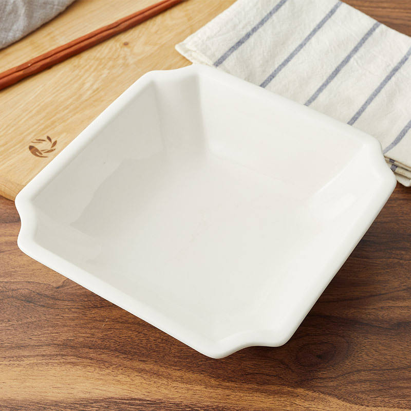 ชามเซรามิกทรงสี่เหลี่ยมออกแบบได้ตามที่ต้องการชามลิงสีขาวเป็นมิตรกับสิ่งแวดล้อมสำหรับห้องครัวในโรงแรมสำหรับงานเลี้ยงสลัดก๋วยเตี๋ยว