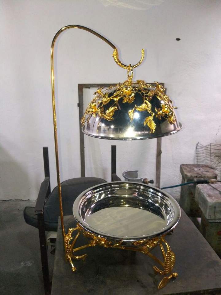 จานทำจากสเตนเลสสตีลดีไซน์ทันสมัยสำหรับการจัดงานโรงแรมบุฟเฟ่ต์อาหารวันหยุดและโต๊ะเสิร์ฟกลางแจ้ง