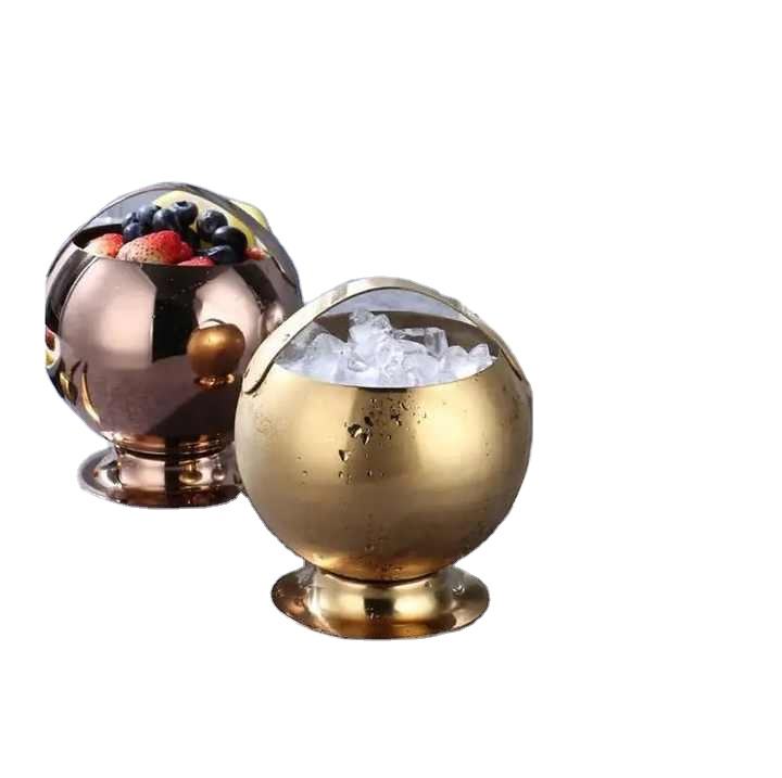 ถังน้ำแข็งสแตนเลสพร้อมที่ยึดสำหรับเครื่องดื่มเย็นและเสิร์ฟเครื่องดื่มเย็นได้ง่ายดีไซน์ทันสมัย