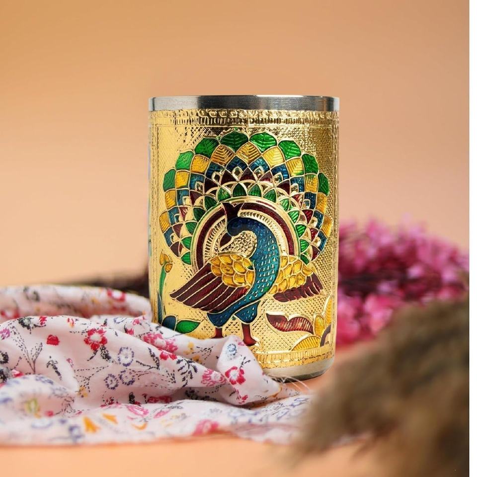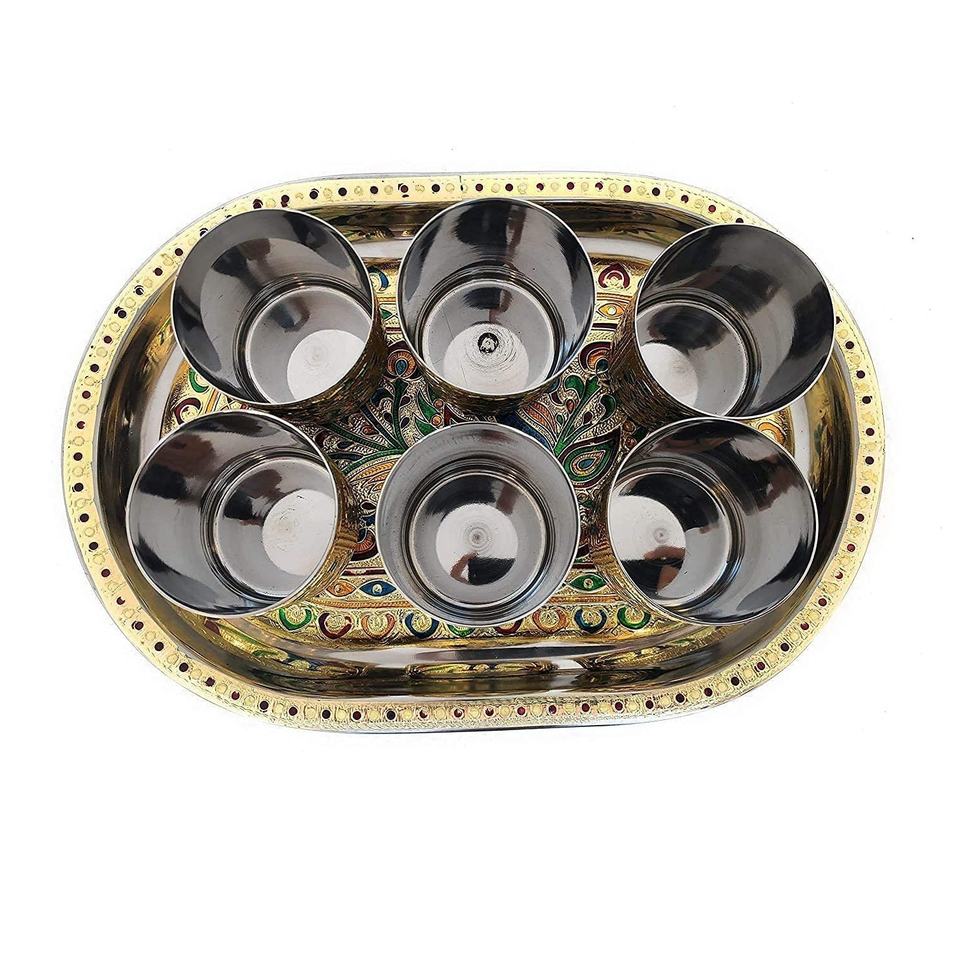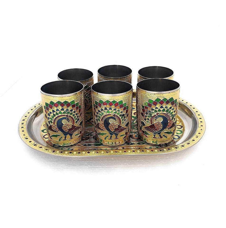 Modern Design Stainless Steel Oxidised Floral Design Decorative Water Juice Glass Set for Home Return Gift Traditional Style